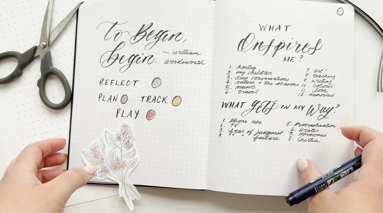 You'll personalize your pages using your included supplies: a personalized bullet journal with your name on it, a professional brush pen, and a guided workbook filled with prompts, tracing, and cutouts for your journal to make it uniquely yours.